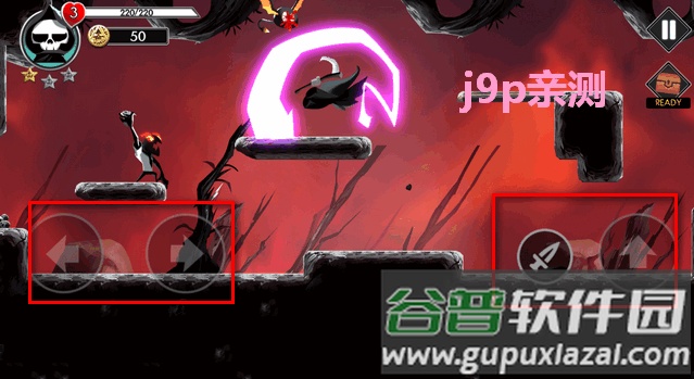 4、屏幕右下角区域集中了发动攻击与向上跳跃的功能按键。