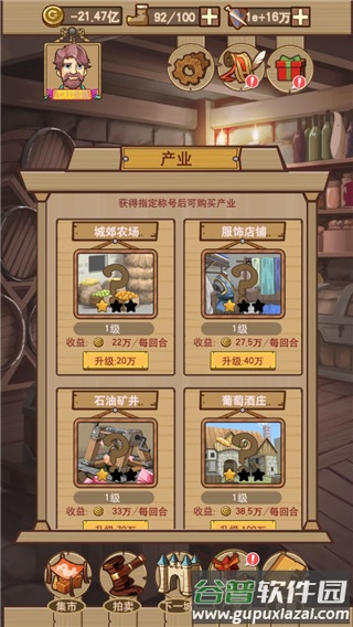 积累足够资金后,可以购置农庄、酒庄、组建商队或经营歌舞厅等,这些产业会为你提供持续稳定的收益。