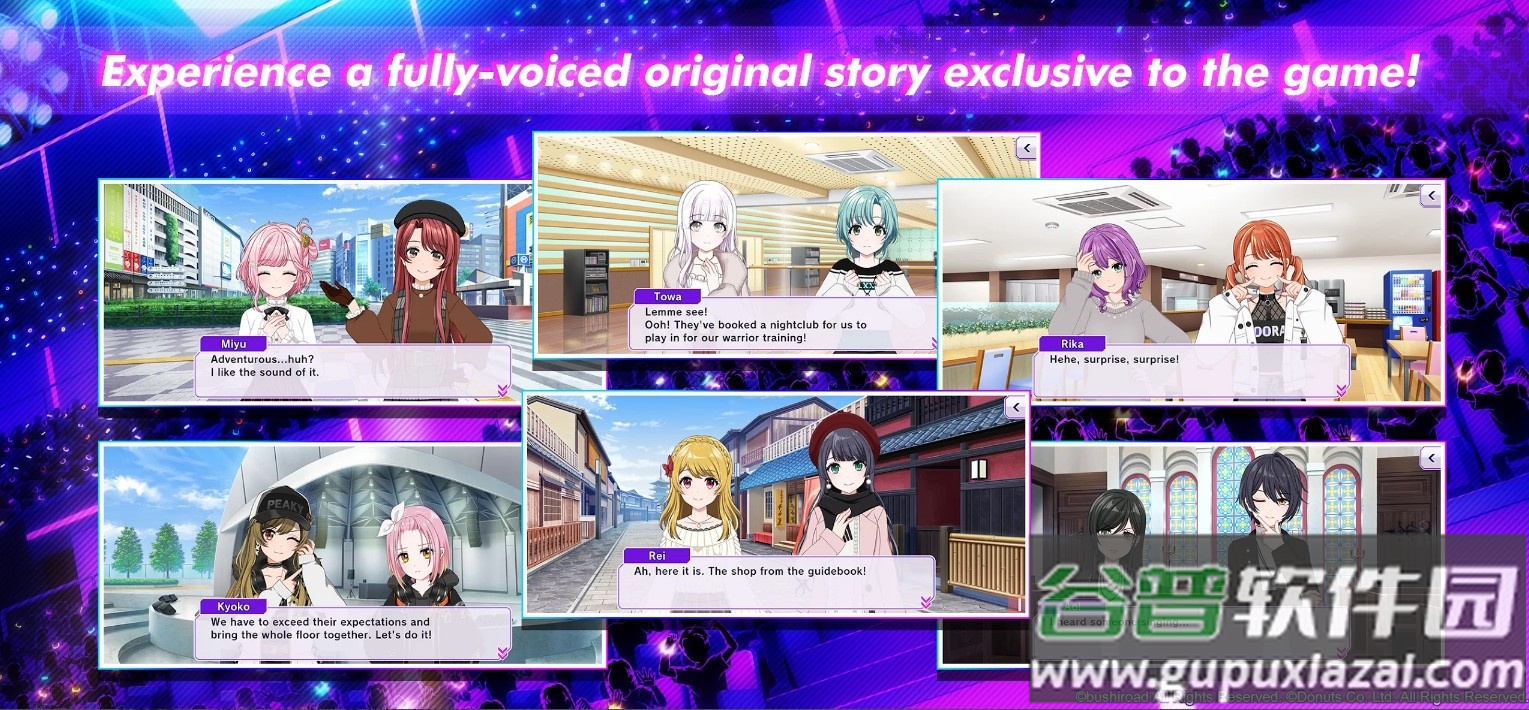 1. 与少女们共同生活,培养彼此情感,演绎多种曲风;游戏包含超过170首热门歌曲,并能自由搭配角色服装;