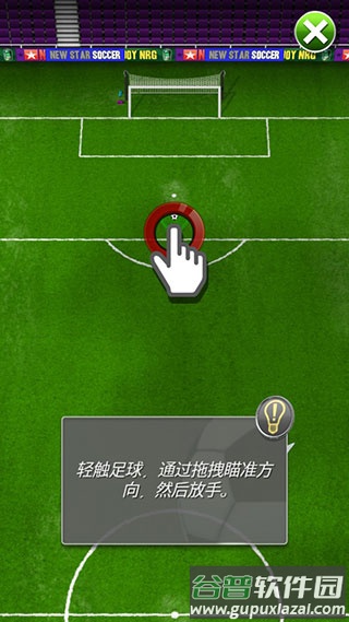 进入游戏的教程模式,你可以从基础开始练习;轻触足球并拖拽以瞄准方向,松开手指即可完成踢球动作。