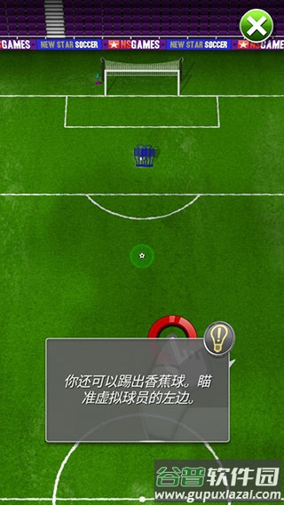 尝试踢出弧线球,瞄准虚拟球员的左侧区域。