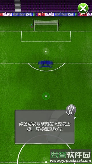 你还可以施加下旋或上旋效果,直接对准球门方向操作。