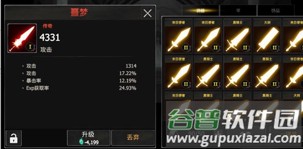 攻击力较低时,可装备增加金币掉落的魂石,前往1-2经验关卡快速刷取,最快约十五秒一波;攻击提升后,建议刷取第二关的BOSS;核心技能搭配以40级技能“圣剑”为主,点满后刀刀暴击,配合风车斩可快速清屏;具体流程如下。