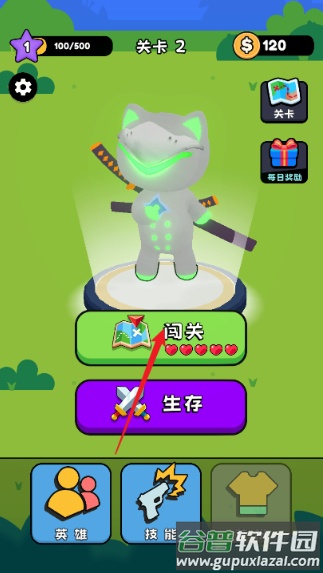 1、进入游戏后选择闯关模式,即可开始战斗;