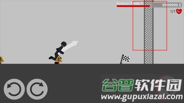 4、跑酷过程中需依据动作姿态进行跳跃,通过正确操作攀爬杆子即可进入下一段赛道。