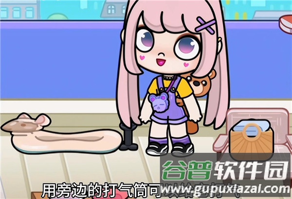 2.游泳池边有一个泄气的游泳圈,使用旁边的打气筒可以为它充气。