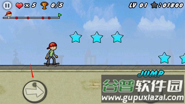 加速移动:熟练使用左侧加速键,通过连续点击实现快速滑行,这是完成关卡的基础条件;跳跃技巧:右侧跳跃键是关键,需要把握时机起跳,以避开陷阱或跨越断崖。