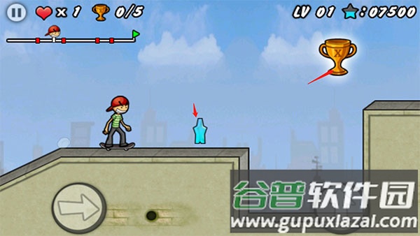 6、在滑行过程中尽可能收集星星和奖杯,它们对后续解锁新关卡至关重要。