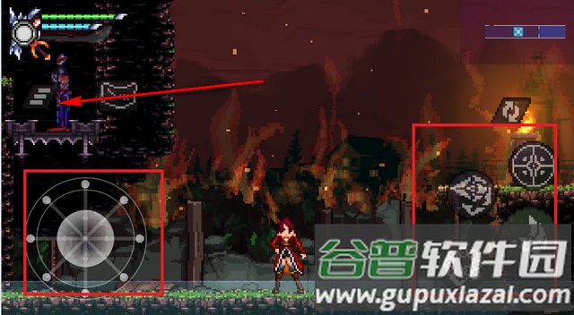 5、屏幕左下角的虚拟摇杆控制角色移动,右下角则设有攻击与跳跃按键。