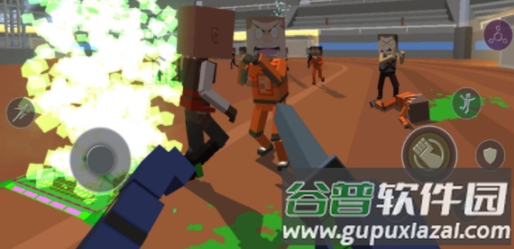 3、整体呈现鲜明像素特征,玩家需在不同场景中与敌人交锋,击败目标会产生夸张的喷溅效果。