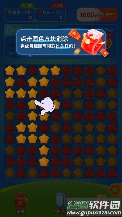 3、跟随新手引导开始消除闯关,游戏中设有大量免费红包奖励等待领取。