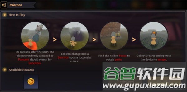 - 扮演桃乐丝:需要收集散落在房屋各处的3条线索,从而找到逃离的路径;设法救出被关押的队友,共同逃脱;遭遇奶奶时,可投掷石块使其减速;只要有一人成功逃出,即视为胜利。