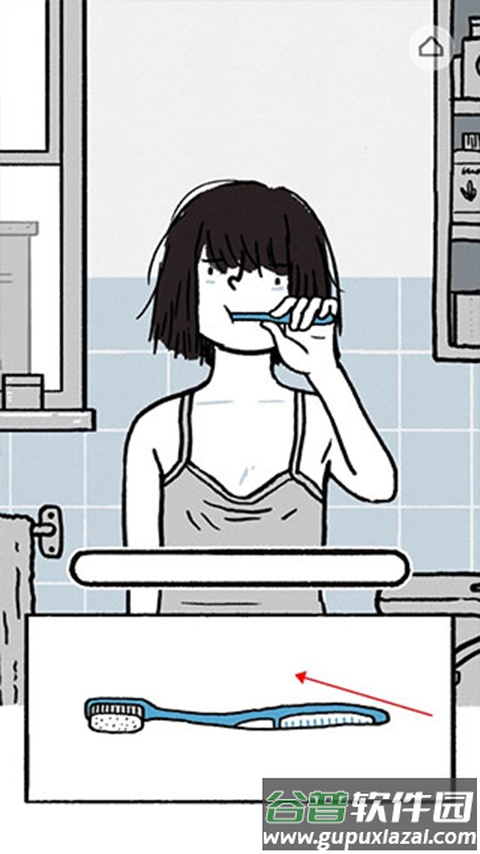 2、拖动牙刷图标,帮助角色完成刷牙动作。