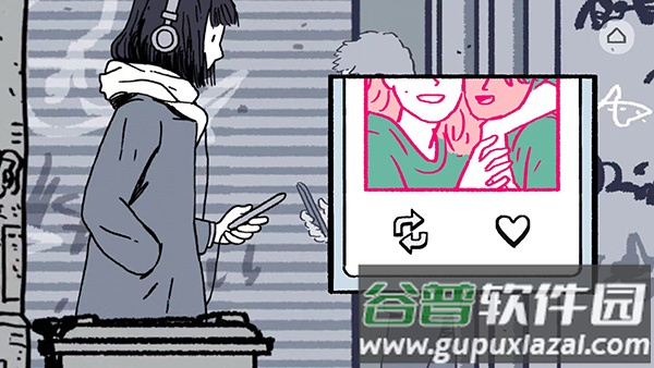 这是一款漫画风格的恋爱叙事游戏,整体如同一本爱情主题的绘本;