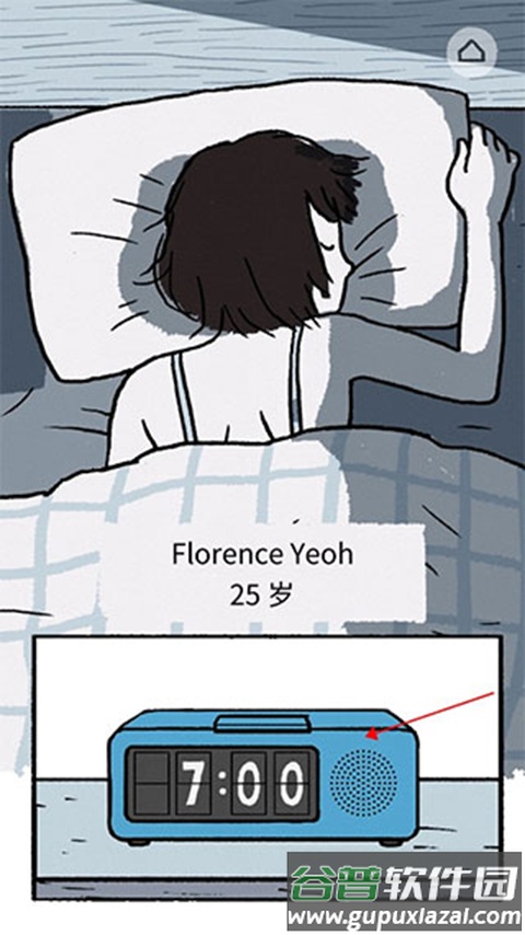 1、点击手机屏幕上出现的闹钟图标,叫醒女主角。