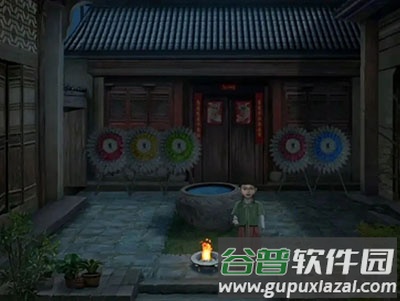 自由行动后首先查看箱子密码,提示涉及人头、纸人、花圈、马及小房子;注意小房子带有一门一窗,观察纸屋发现仅二楼两侧与三楼右侧符合特征,因此房子对应数字3。