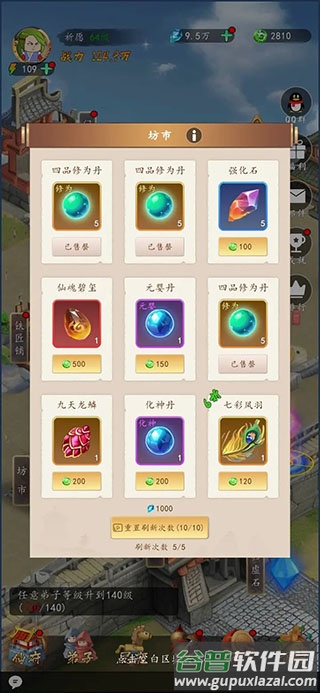 游戏内关卡战力跨度较大,建议集中资源培养单核或双核主力,其余位置配置控制武学,为核心创造输出环境;提升等级需要修为丹,主线任务与坊市是初期主要来源;坊市刷新的丹药等阶与队伍中最高突破境界相关,例如筑基阶段刷新一阶修行丹与结丹突破丹,结丹阶段则出现二阶修行丹与元婴突破丹,因此优先提升一名弟子境界,再刷新坊市获取对应丹药。