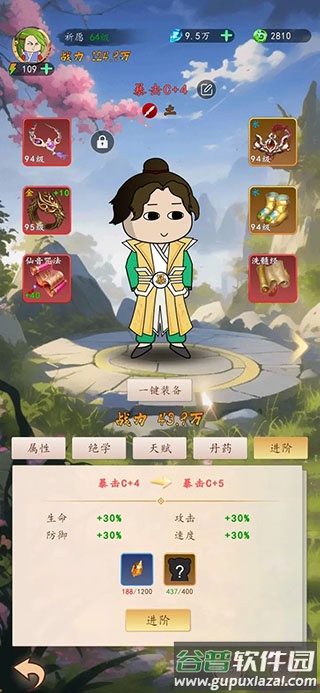 进阶带来大幅百分比属性提升,+3、+6、+9时还会激活职业专属加成;进阶材料主要通过遣散弟子获取,操作需谨慎,重生不返还进阶消耗,只能通过继承转移进阶次数,继承所需材料代价较高,未确定长期培养的弟子不宜轻易进阶。