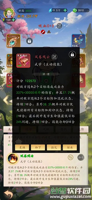 武学为主动技能,全部随机生成;红色品质武学可能具备四条属性,首条为通用属性,后续三条则通过“并且”“另外”“最后”等词条引出特殊效果;判断武学价值需关注作用范围、触发几率及增益减益效果,例如提升友方全体暴击率,或概率眩晕敌方全体,这类武学实战作用显著。