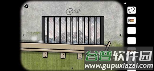 下一个场景中有一台神秘机器,观察其开关,似乎可投入某些物品。在铁窗旁发现时间提示“6:10”,该时间可用于调整钟表。