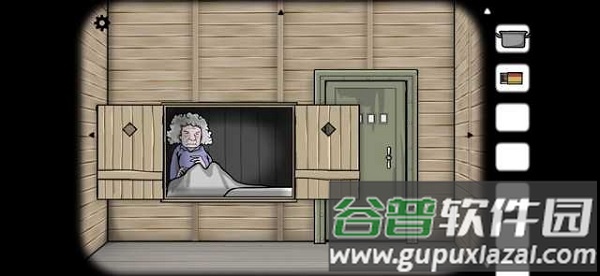 用这把钥匙打开密码门旁的柜子,里面住着一位白发苍苍的老妇人。