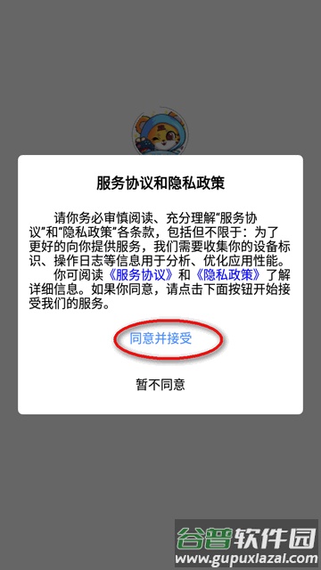 2、首次打开软件阅读用户隐私协议,点击同意并接受;