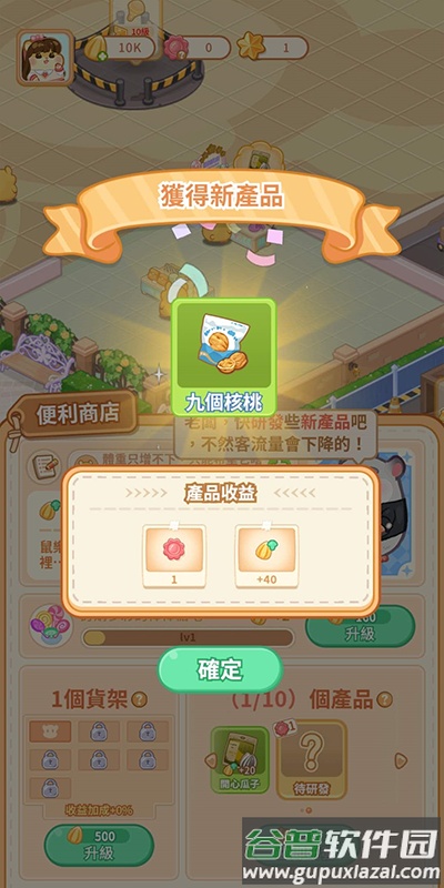 5、商品合成成功后,便能立即在超市货架上架新品;超市的商品种类越丰富,吸引到的顾客就越多,业绩自然也能节节攀升。