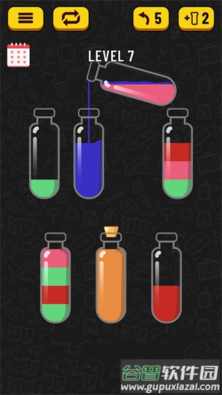 3、不同关卡的难度有所区别;你的倒水顺序会决定结果,且每个玻璃杯必须留有足够空间才能承接液体。