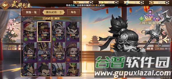 2、收集武将可激活图鉴,图鉴根据武将品质分为R、SR、SSR三个级别。