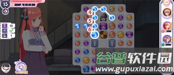 关卡开始时,五位女主角都会登场,每位角色对应特定颜色,例如三玖代表蓝色,消除蓝色方块即可为她积累经验,助力等级提升。