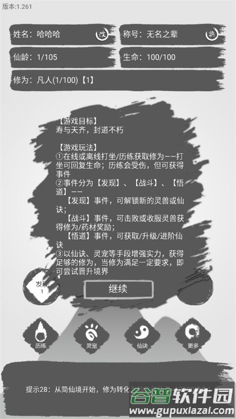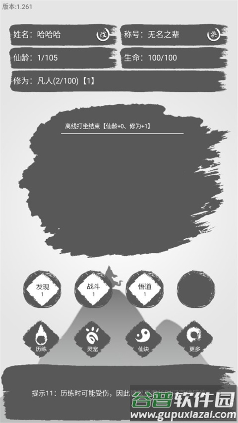 ①通过在线或离线打坐、历练获取修为——打坐可恢复生命;历练可能受伤,但能触发各类事件;