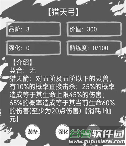 猎天弓可用于消耗仙元,压制简仙境界的修为增长;