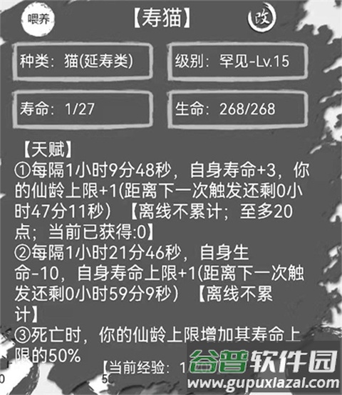 前期灵宠推荐二阶寿猫(罕见品质),它是五阶灵宠中唯一能稳定增加寿命的选项;