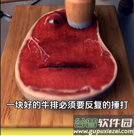 3、真实模拟牛排的处理过程,高度还原细节步骤,呈现出一场视觉上的奇特盛宴。
