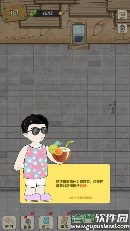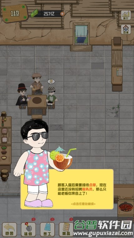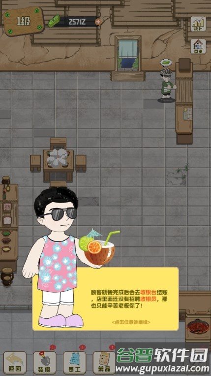 2、初期资源积累的问题可以通过领取关注礼包缓解。获得启动资金并雇佣员工后,游戏节奏转变为定时上线收钱与简单操作,经营深度稍显不足。