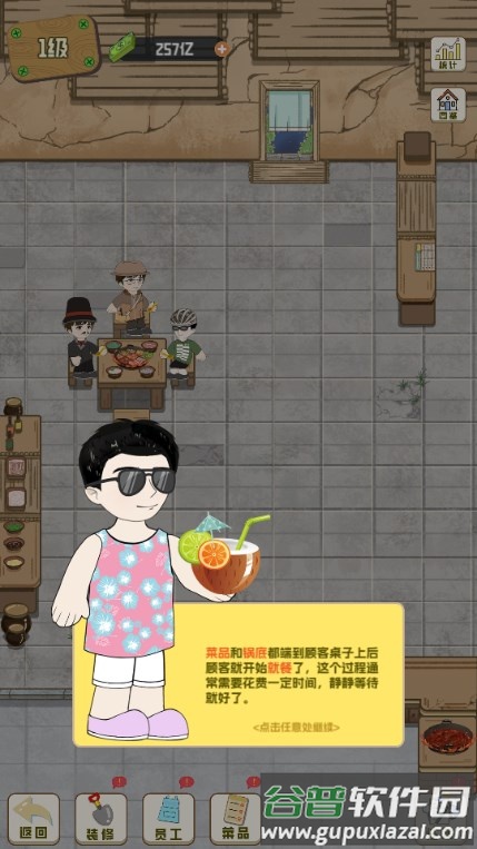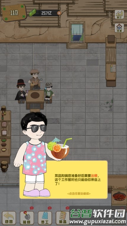 经营策略体现在何处?所有菜品均为自动解锁,收益数值固定,给人一种只需间歇上线收钱然后点击升级的感觉。在未雇佣服务员的前期阶段,游戏更像是一款点击模拟器。