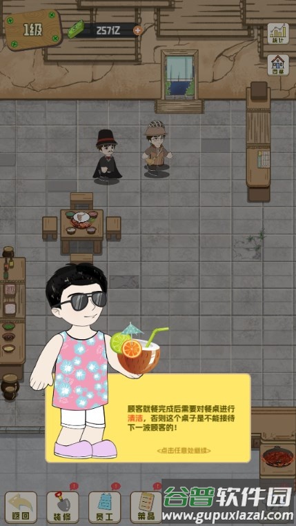 1、游戏前期发展较为困难。每桌客人消费金额有限,完成新手引导后立刻面临升级店面的任务,且所有操作均为手动。内容单薄加上重复性操作,很难让玩家持续投入。