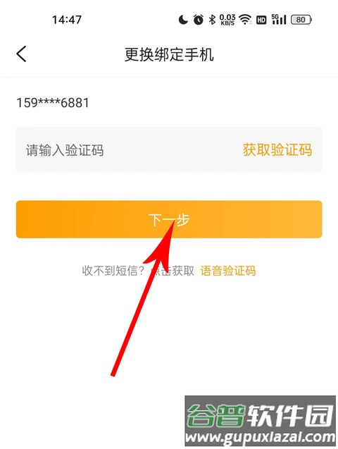 4、进入更换绑定手机页面后,先获取原手机号的验证码并输入,然后点击下一步。
