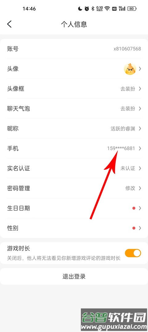 3、在个人信息页面找到“手机”选项,通常位于第六行,点击进入。