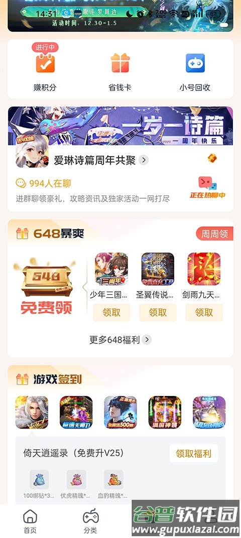 4、福利:通过完成平台任务赚取游戏积分,可兑换各类福利奖励。
