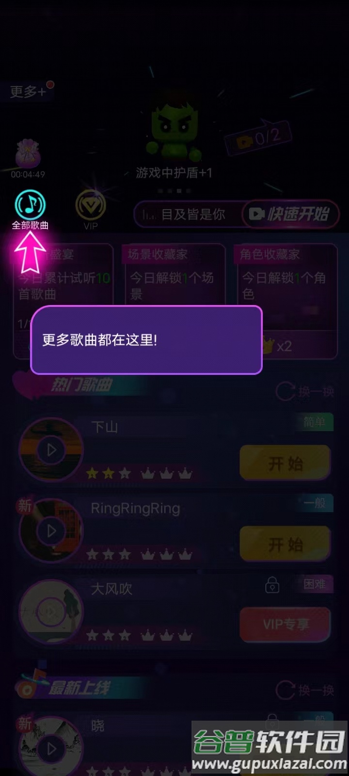 2、引导结束后,来到主界面,点击全部歌曲选项;