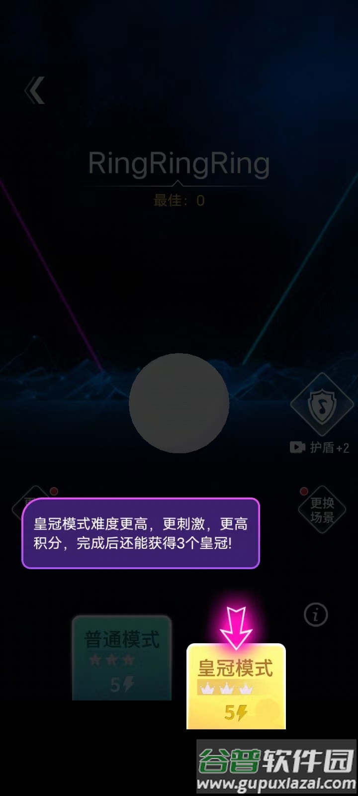 6、开始游玩后,你会看到两种模式:普通模式与皇冠模式;皇冠模式难度更大,节奏更紧张,积分回报也更丰厚,顺利通关还能收获三枚皇冠;