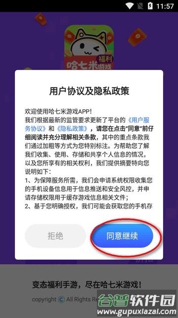2、首次打开软件会显示用户协议与隐私政策,点击同意后继续操作;