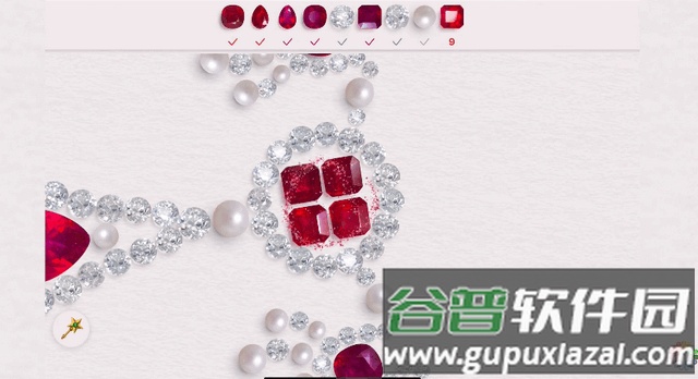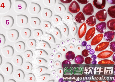 3、玩法遵循数字填色规则,把对应颜色的宝石放置到画布上标有数字的区域。