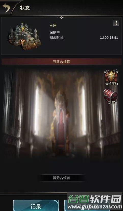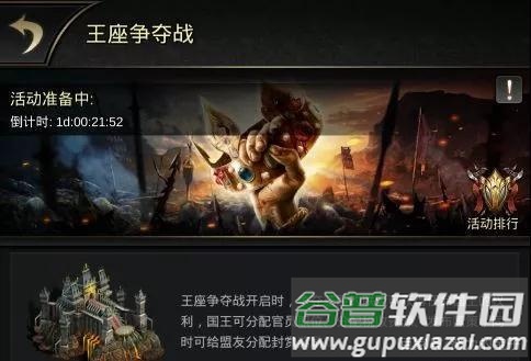 和平状态下,王座与守护塔均处于保护罩中;王座界面显示当前状态剩余倒计时及国王信息;进入准备阶段后,国王与官职的增益效果及权利被清除,准备状态结束后转为争夺状态;争夺状态结束后,获得国王任命权限的联盟盟主可挑选一名联盟成员担任国王,若二十四小时内未任命,则默认盟主成为国王;国王可将官职授予本服任意玩家。