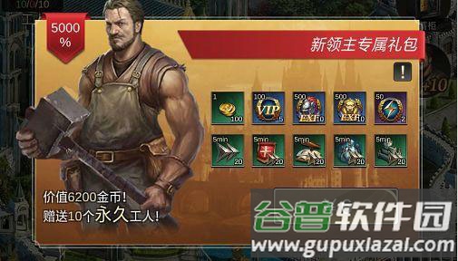 工人礼包内含十名永久工人,工人是建筑升级的关键要素,其重要性不言而喻。工人数量越多,建造进程越快。前期仅拥有十至二十名工人时,额外获得十名将对升级建造产生显著助力。