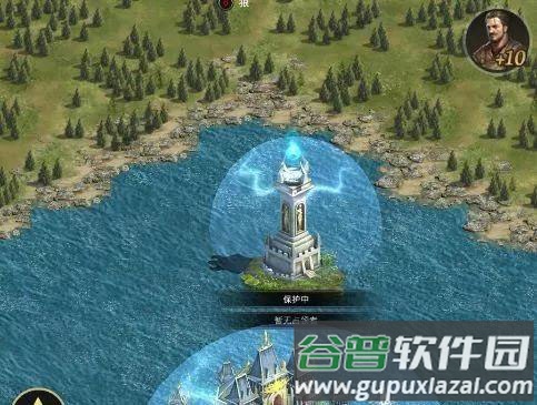 王座四周设有四座守护塔;争夺期间,联盟玩家可对守护塔进行单人行军或集结,行军抵达后再判定为增援或攻打行为,战损判定为百分百受伤;占领成功后,若王座非本联盟占领,守护塔将每十秒攻击王座一次,每次造成若干士兵受伤,并对王座内士兵施加负面状态;若王座由本联盟占领,则守护塔停止攻击;每多占领一座守护塔,对王座造成的士兵消耗数量增加;例如,占领一座时单个守护塔攻击力为一百,占领两座时单个攻击力提升至二百,两座总计四百;占领三座时单个攻击力为三百;占领四座时单个攻击力达四百,四座总攻击力为一千六百。