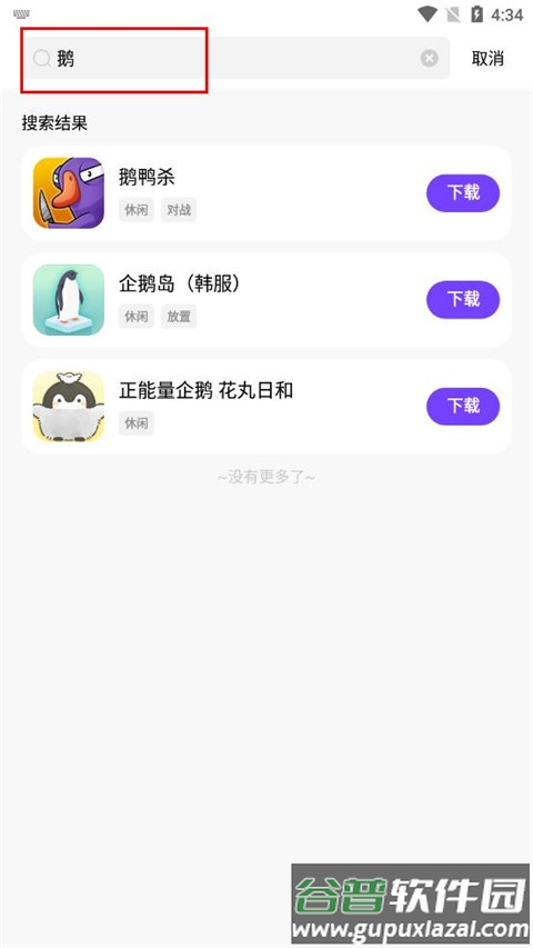 3、也可以点击上方搜索框,输入游戏名称例如“鹅鸭杀”;
