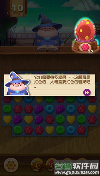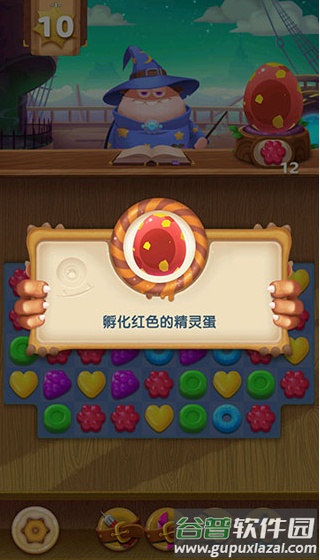 1、开始游戏关卡后,界面会给出当前的目标提示,例如这一关需要孵化红色的精灵蛋。
