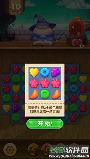 3、注意观察,将三个颜色相同的糖果连成一条直线即可完成消除并收集。